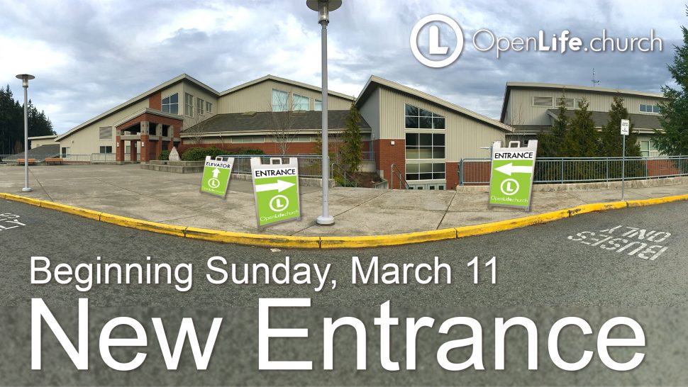 By openlife on March 8, 2018Read moreSpring into a New Entrance STARTING THIS SUNDAY! Things are really moving forward at Bonney Lake High School (See what we did there)! Not only should you move your clock ahead on Saturday Night when you go to bed, you get to come into the church...