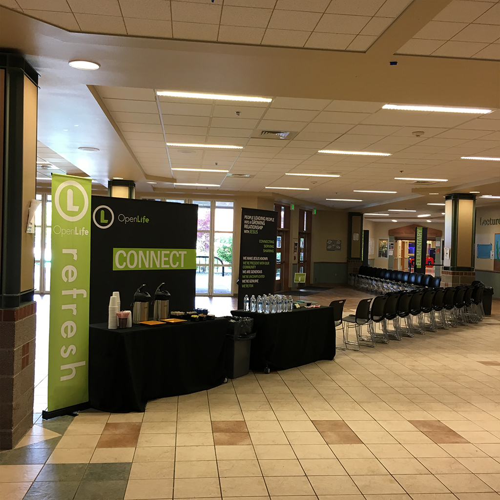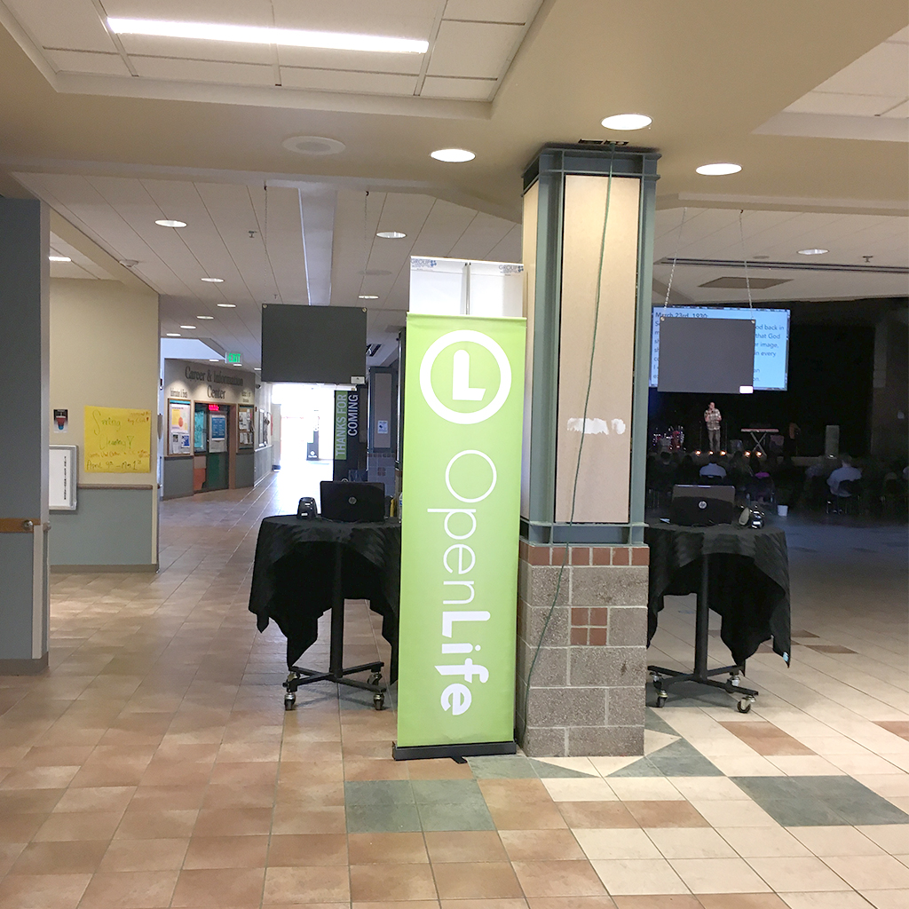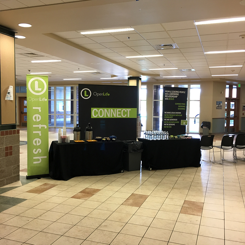 - On the back side of the Kids Check-in, we put the Open Life green banner to make the ugly look less, ugly!