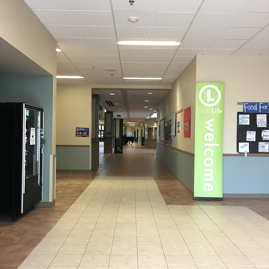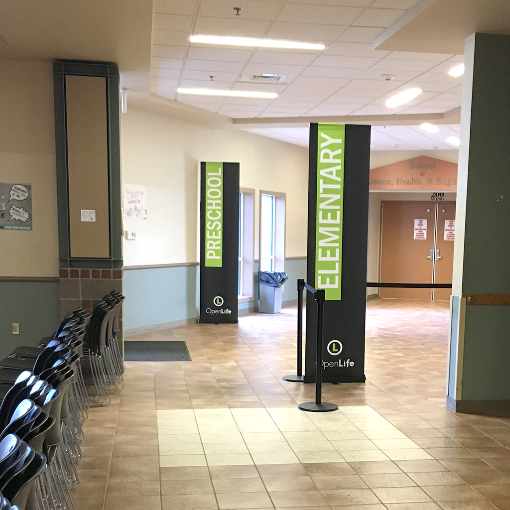 - Note the visibility of Preschool & Elementary Banners ahead (Nursery is just to the right out of frame)