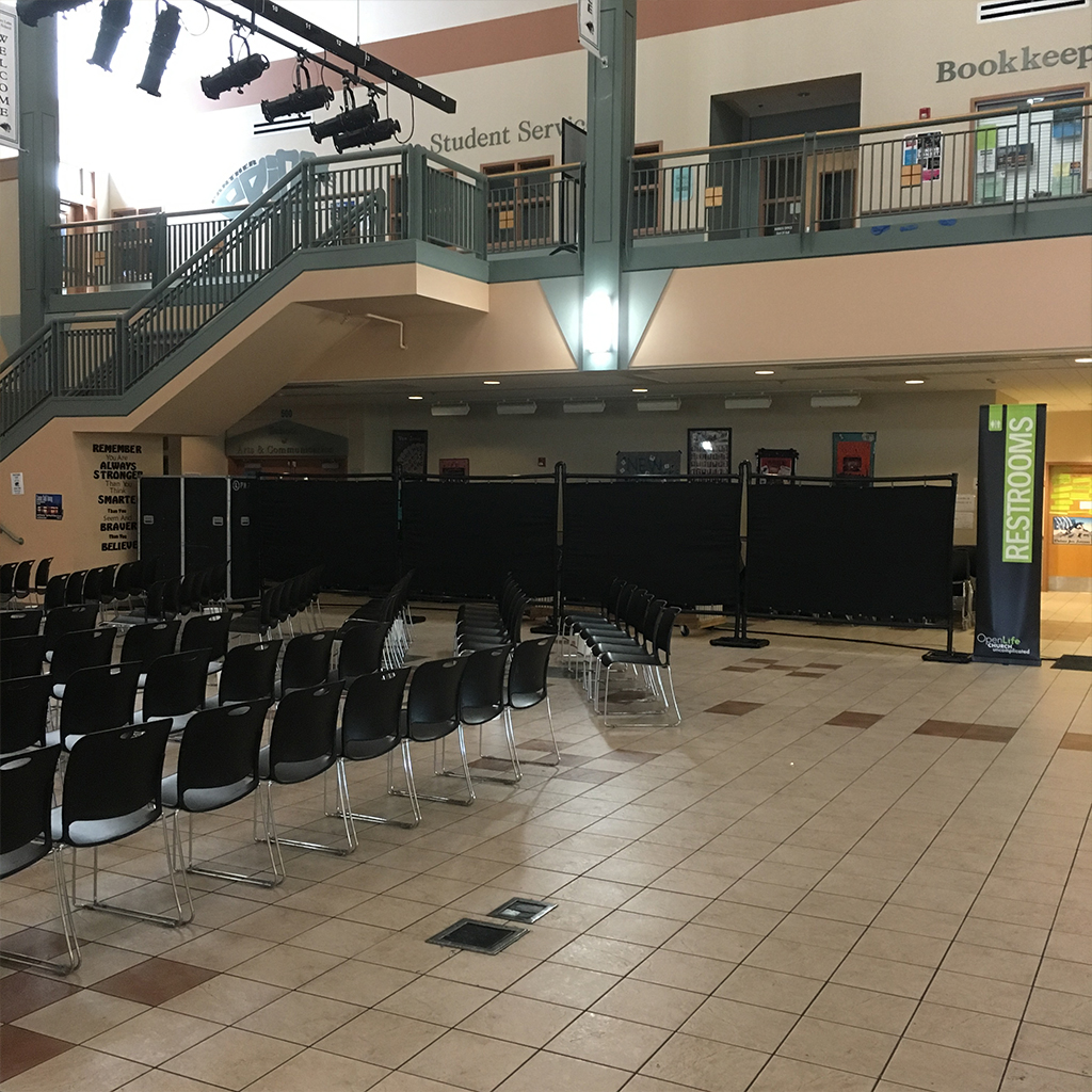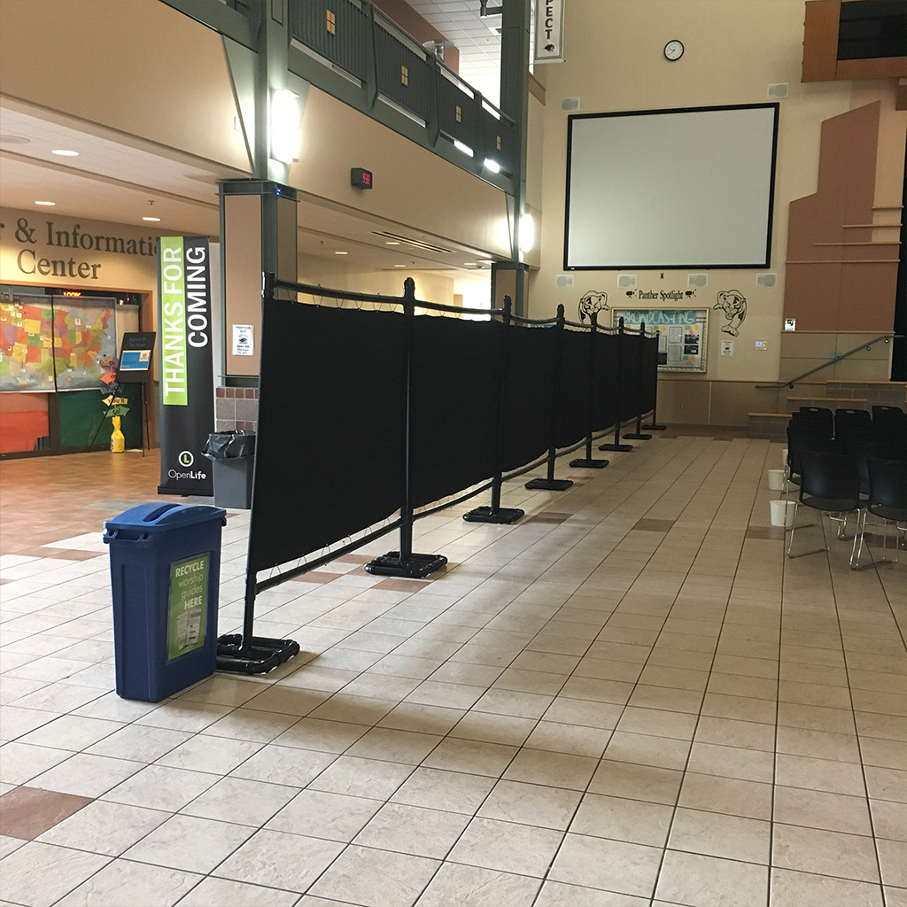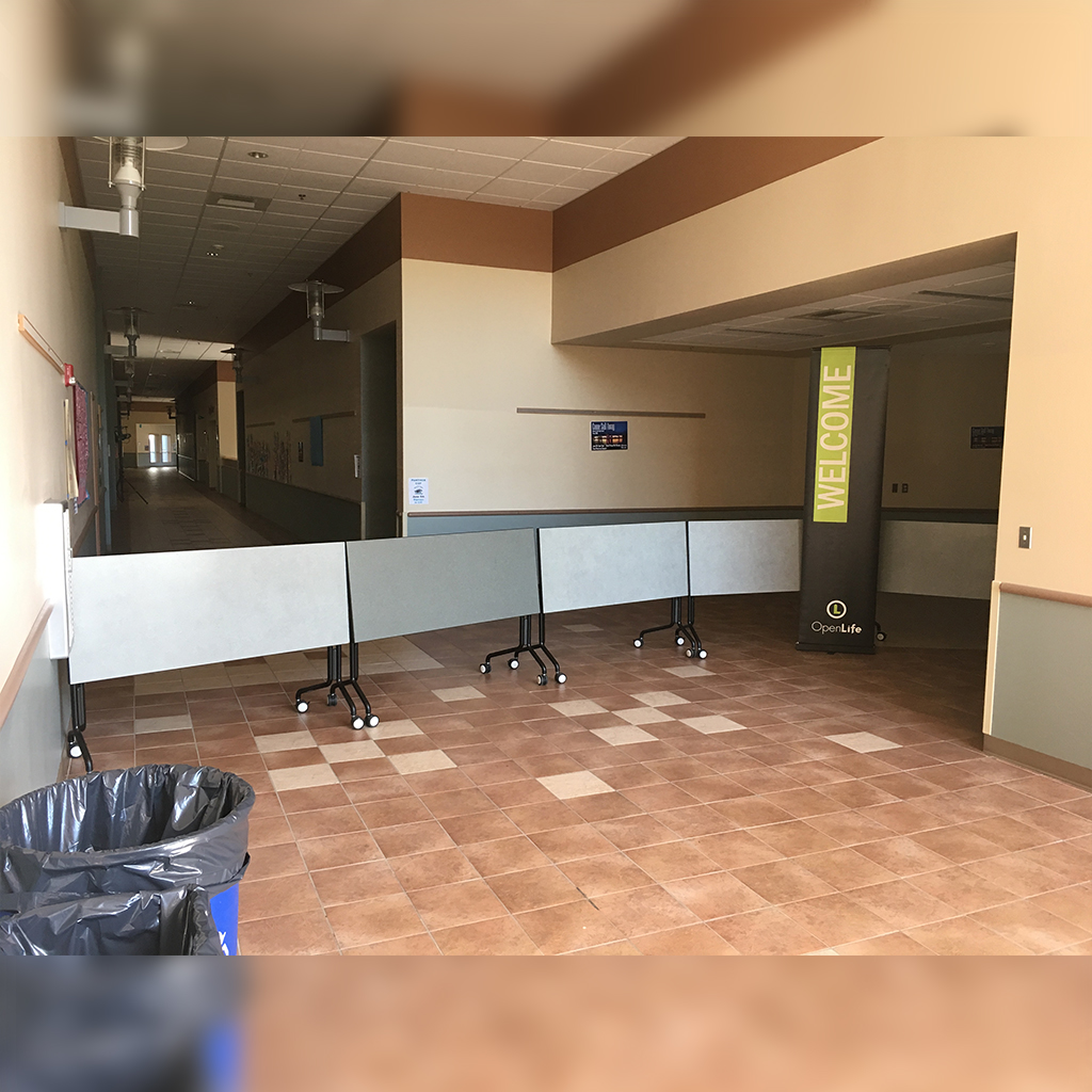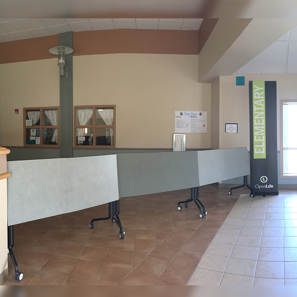 - Place tables so that when set-up the Kids Life Banner is visible between from Entry Hallway.